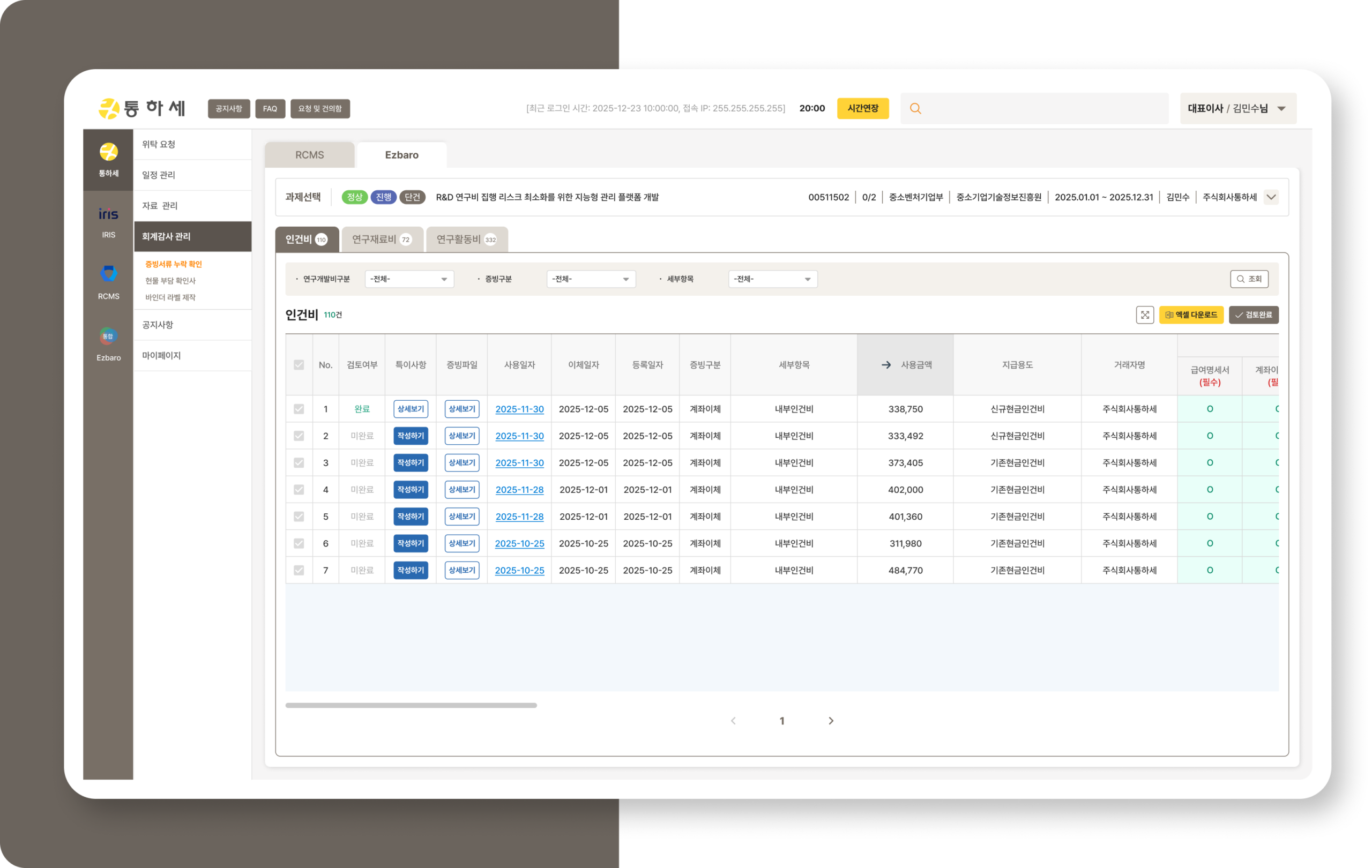 연구수당 지급 가능 금액을 즉시 계산, 정부지원사업 관리에서 발생하는 오류·불인정 위험을 사전에 방지