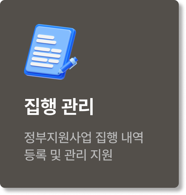 정부지원사업 관리·집행·정산이 어려우신가요? RCMS, IRIS, e나라도움 등 여러 정부 시스템을 사용하는 연구과제 관리와 정산 업무를 운영지원 또는 자동화 시스템으로 지원합니다.